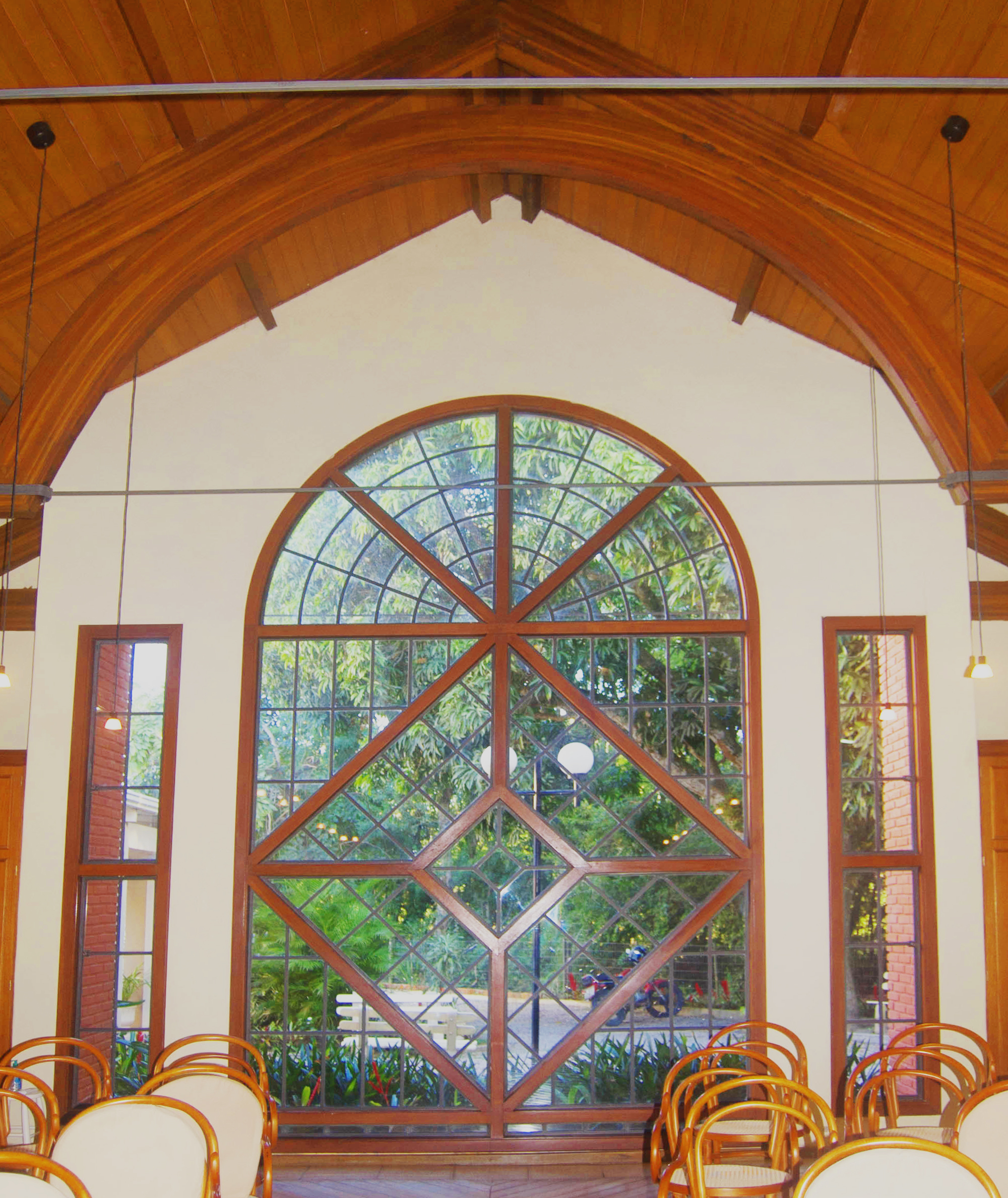 Nossa capela proporciona um ambiente de luz e tranquilidade em meio uma arquitetura que mistura os elemetos do local.